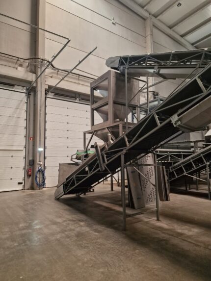 Quando a azeitona chega ao lagar, é pesada e identificada digitalmente, para ser encaminhada para uma das duas linhas de grande capacidade que existem neste espaço: a primeira tem uma capacidade de limpeza de 70 toneladas/hora e também de lavagem; enquanto que a segunda tem uma capacidade de 100 toneladas/hora. O responsável vai contando que, tradicionalmente, a lavagem era uma operação essencial, mas que tem dois aspetos negatives: por um lado, o consume de água e, por outro, a qualidade final do azeite, até porque o próprio pode perder alguns compostos essenciais por arrastamento.