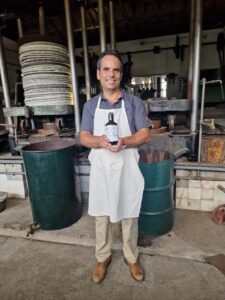 Recuando um pouco no tempo, enquadra-nos António Melara que um dado muito interessante é que há umas décadas a indústria do azeite aqui era grande, havia 25 lagares de azeite aqui na região. Todas as aldeias teriam lagares de azeite e não só. Entretanto as pessoas deixaram de colher a azeitona e começaram a fechar por eles próprios. “ Bem, há um certo lobby feito, principalmente do lado espanhol, nos anos 80, em torno do que é o olival, e eles definiram muito bem aquilo que era uma estratégia de futuro. E nessa estratégia de futuro vieram incentivos para modernizar os lagares, modernizar as plantações, etc, etc, e de certa forma, o que foi feito por lá, mas acabou por matar todos os pequeninos”. Foi então de onde o entrevistado partiu, “há muito poucas marcas de azeite como nós, feitos do olival tradicional, com o lagarzinho, estás no mercado a combater com os grandes, mas a verdade é que tenho conseguido, e de uma forma orgânica, e é giro e nós percebermos que é possível, custa, demora tempo… não podes querer viver disso logo, tens que deixar o mercado ir, mas a verdade é que é muito rápido perceber uma coisa, é que este azeite, por ser doce, cria saudade no paladar das pessoas”.