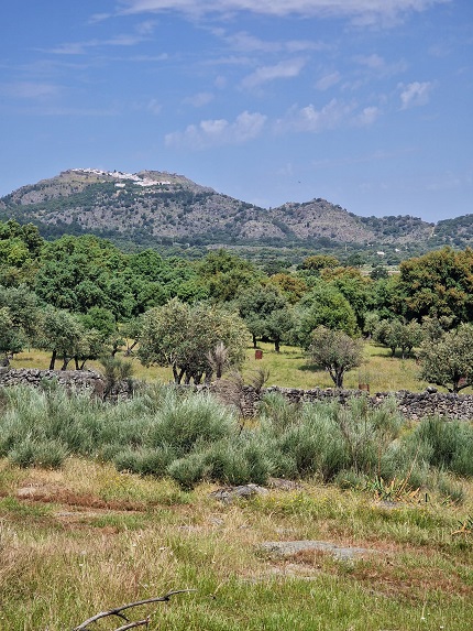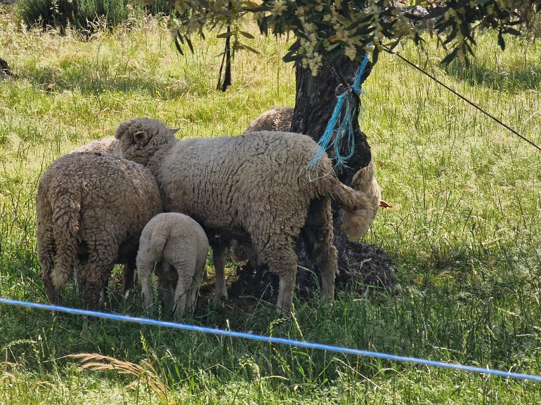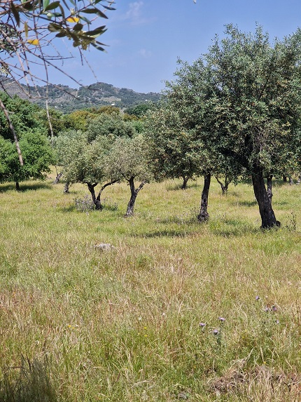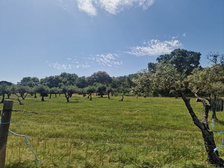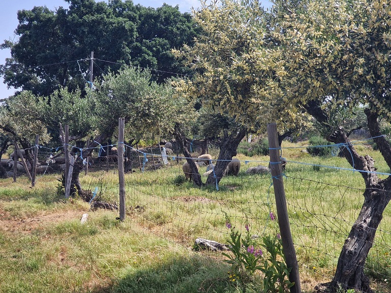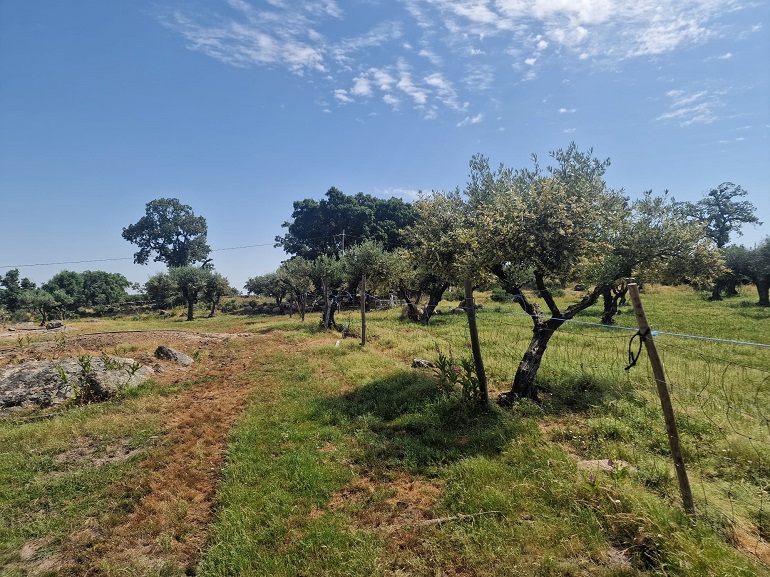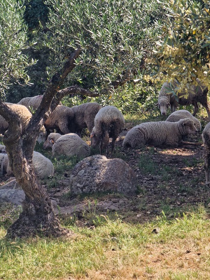 Ao longo do passeio por uma das encostas da Serra de São Mamede, António descrevia o habitat por onde passávamos: “mais uma vez quero que vocês olhem um bocadinho à volta e percebam que no meio desta vegetação toda nós temos aqui bastante olival, mas ele está completamente integrado com os sobreiros”. Este é o olival tradicional. Indica ainda o nosso guia desta caminhada que “uma vez mais, temos aqui um equilíbrio e é este equilíbrio que o Parque Natural nos dá faz e faz com que tenhamos animais que o habitem e com que ele seja sustentável”. As oliveiras não estão sozinhas, misturam-se com sobreiros, castanheiros, carvalhos… Já de regresso de Espanha, paramos num terreno ao acaso, abrimos o cercado e avançamos para oliveiras. Explica-nos que estas são podadas através de uma técnica muito antiga em que se corta totalmente a ramagem da oliveira, permitindo que a árvore regenere. “Quando fazemos isto sabemos que vamos perder produção de frutos por dois anos, depois temos azeitona ao 3º, 4º e 5º ano. Esta técnica, de certa forma, ajuda a evitar a propagação das doenças, que nas árvores normalmente vão para as partes mais fracas, para as extremidades”. O olival para o qual avançamos está sobre uma carpete vegetal, indica, “esta é fundamental, a base de tudo”. Explica o António que se não tivermos uma boa terra, dificilmente existirão boas árvores, pois, quando estiverem a ficar 35 ou 36 graus a humidade vai continuar no solo, porque o sol não incide diretamente. O segundo elemento, deste cenário, é que as oliveiras estão acompanhadas por ovelhas merinas, a carpete também “é o alimento daquelas meninas (ovelhas) e estão a dar os nutrientes que as árvores precisam. Isto retém tudo o que faz falta. Isto é vida. Tudo isto é vida aqui por baixo”.