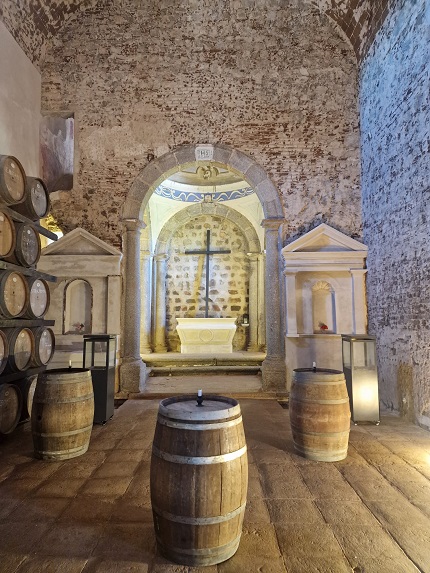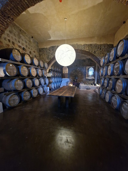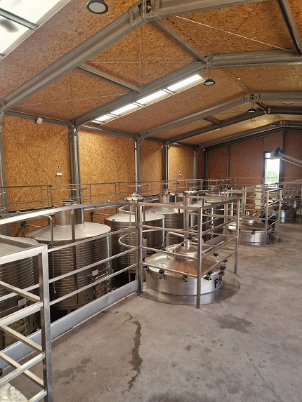 A construção da adega ocorreu em 2017, um espaço moderno que respeita o declive natural do terreno, que inicialmente funcionou apenas com o essencial, recorrendo a materiais duráveis como o aço, o ferro e o vidro. A ideia de transparência é a base pois, no decorrer de uma visita, como aquela que fazemos, é possível ter noção da vida da adega e do trabalho dos enólogos. Um ano e meio depois o edifício da adega foi totalmente revestido com placas de cortiça que se integram na paisagem e ajudam ao nível do isolamento acústico e térmico. Existe também um lagar de azeite.