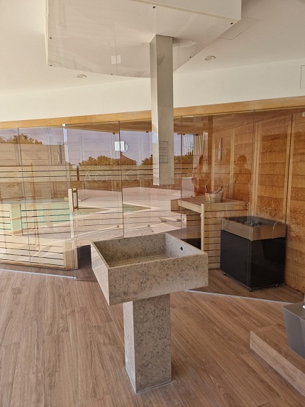 Lá fora, há espaços para ler à sombra de uma árvore, apanhar sol ou deixar as crianças brincar. No verão, o espaço é aberto ao público que pode vir experimentar o Wine Garden do Portalegre Palace. Conhecemos também a piscina, um espaço aproveitado a partir de um tanque antigo que, provavelmente, em outros tempos, teria tido a função de armazenar água. Não faltam ainda um Jacuzzi e um pequeno Spa, com duche sensorial, spa para pés, fonte de gelo e sauna.