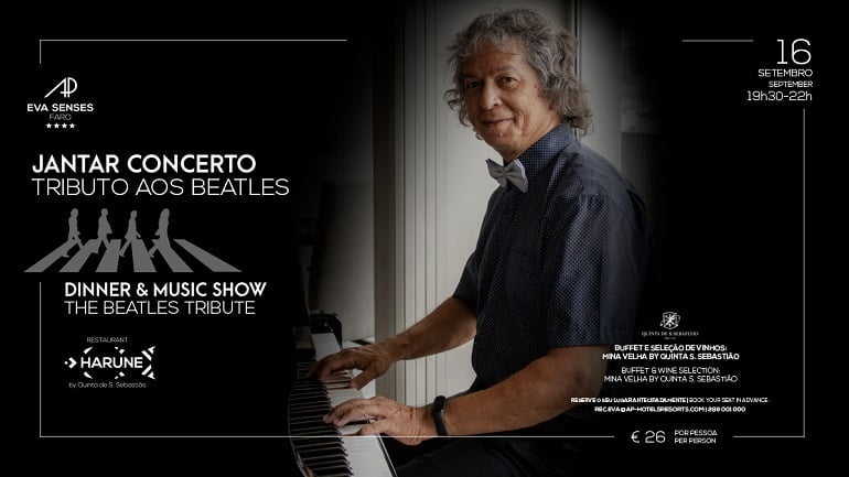 AP Eva Senses acaba de anunciar um Jantar Concerto dedicado aos Beatles no restaurante Harune. É já no dia 16 de Setembro, pelas 19:30, o Jantar Concerto Tributo aos Beatles que se realizará no Restaurante Harune, no Hotel AP Eva Senses.