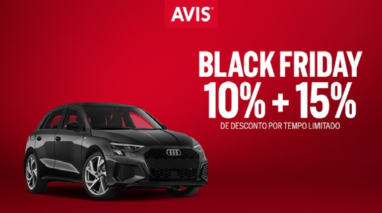 A Avis acaba de lançar a campanha de Black Friday com descontos a começar nos 10%. Os clientes da rent-a-car terão a oportunidade de efetuar reservas com 10% de desconto, às quais pode ser acrescentado mais 15% de desconto se escolherem o pagamento imediato. Esta promoção é aplicável a todas as reservas realizadas entre 18 de novembro a 1 de dezembro para viagens em Portugal e Espanha até dia 15 de dezembro.