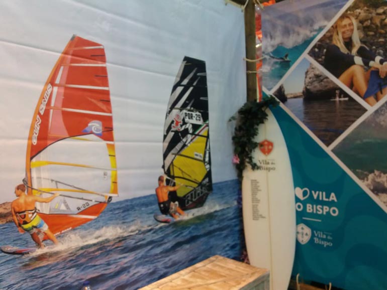 No Pavilhão 8a, está a Câmara Municipal de Vila do Bispo. Foi no stand C47 que encontrámos uma empresa de desportos náuticos. Situada em Sagres, no concelho de Vila do Bispo, a Wind4All trabalha especialmente com o “mercado estrangeiro”.