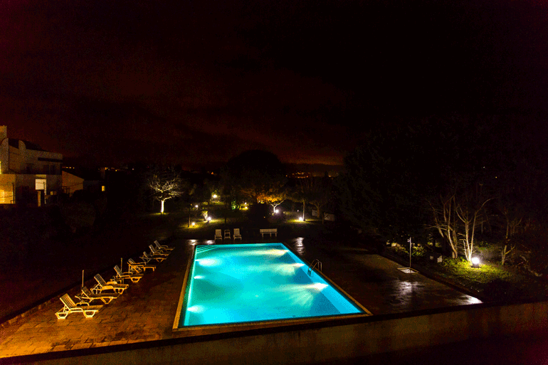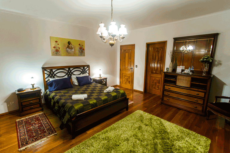 dá um toque muito confortável e original. Com capacidade para receber entre 30 a 35 hóspedes, a Casa Barão das Laranjeiras pode ser alugada por quartos, pisos ou na totalidade. São três os pisos que compõem esta unidade de alojamento, com vários quartos, uma suite e sete casas de banho, bem como um estúdio com capacidade para acomodar até seis pessoas, com casa de banho e cozinha privativas. O jardim de 4.500 m2 é dotado de uma ampla piscina para os dias mais quentes, espaço para praticar desporto, pomar onde, dependendo da época do ano, os hóspedes podem colher a sua própria fruta, e churrasqueiras. Ali perto, os hóspedes podem ainda recorrer a alguns restaurantes e supermercados.