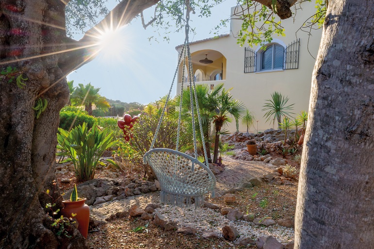 um Algarve diferente, estendendo-se por um hectare de terreno privado com três suites e um quarto com duche e lavatório, bem como uma ampla sala de estar com mesa de refeições para oito pessoas, varanda com vista para o mar, piscina, parque infantil e um jardim exótico.