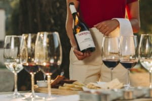 Um dos espaços mais atrativos é o terraço exterior, ideal para relaxar e ficar a admirar a paisagem enquanto observa a adega de arquitetura contemporânea, projetada em madeira e cortiça pelo arquiteto Carlos Castanheira. O edifício exibe uma extensa varanda na sala de provas, criando uma relação harmoniosa com a vinha.