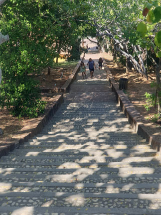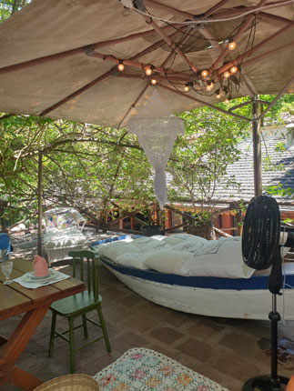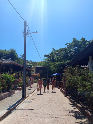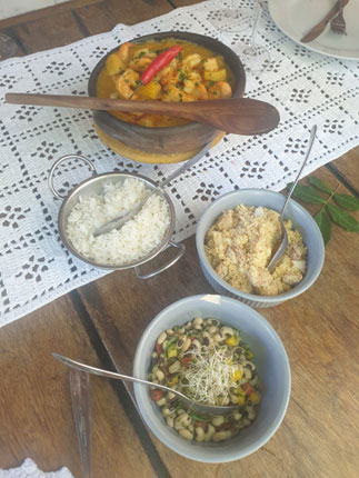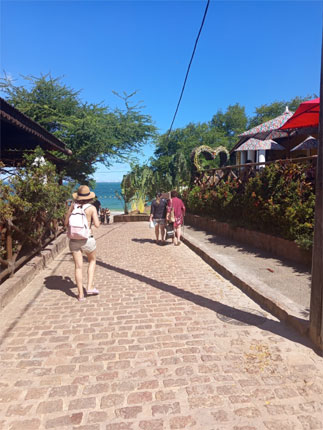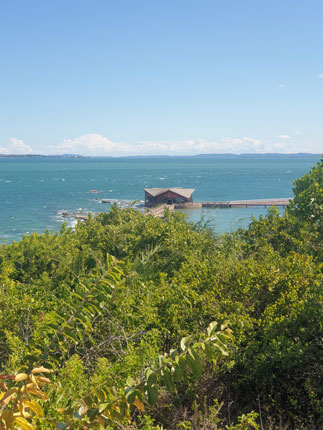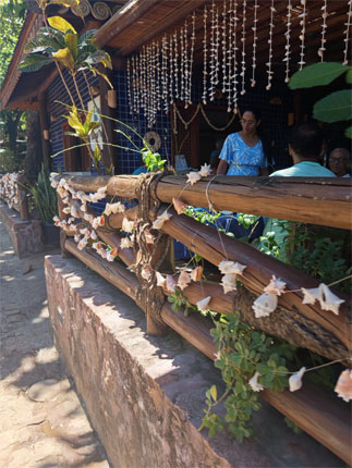 Se a viagem da embarcação de ida foi tranquila, a de regresso a Salvador demonstra-nos as duas faces do mesmo mar (quem não leu Mar Morto). Mas a ilha dos Frades revelou porque é um destino em ascensão por aquelas bandas. O tempo foi curto para usufruir da praia, uma pequena enseada com águas pacíficas. Mas outros haviam que tinham mais tempo. O nosso destino foi o Restaurante Preta. Este ocupa uma ampla área ao ar livre, mantendo o clima de praia na hora da refeição. Peculiar, criativo, integrado na paisagem, causou sensação, pelos sentidos, comida e sumos naturais. Os pratos baianos correm pela mesa, as entradas seguem a lógica do restaurante em apresentação e diversificação de molhos. Um rolo de siri, flor de banana, com massa crocante e molho de tamarindo, um queijo coalho assado com mel de cana e gengibre abrem o caminho a um camarão com creme de moqueca com lascas de polpa de côco verde e pequenos pedaços de fruta pão, leve toque de dendê, arroz, farofa de banana com tapioca e andu. De salientar o sumo natural de maracujá que todo o grupo consumiu com intensidade, mas não só. Ainda se apresentou à nossa mesa a Preta, a proprietária, que não era negra, como todos esperavam. Este lugar de repasto superou a alegria com que entrei há alguns anos no Beijupirá, em Porto de Galinhas, ou mesmo num ou outro restaurante de Búzios, demonstrando assim que é algo a não perder por aquelas bandas.