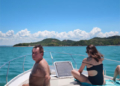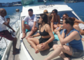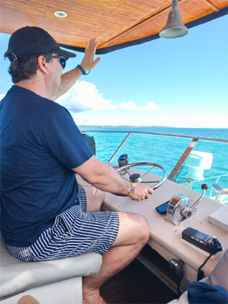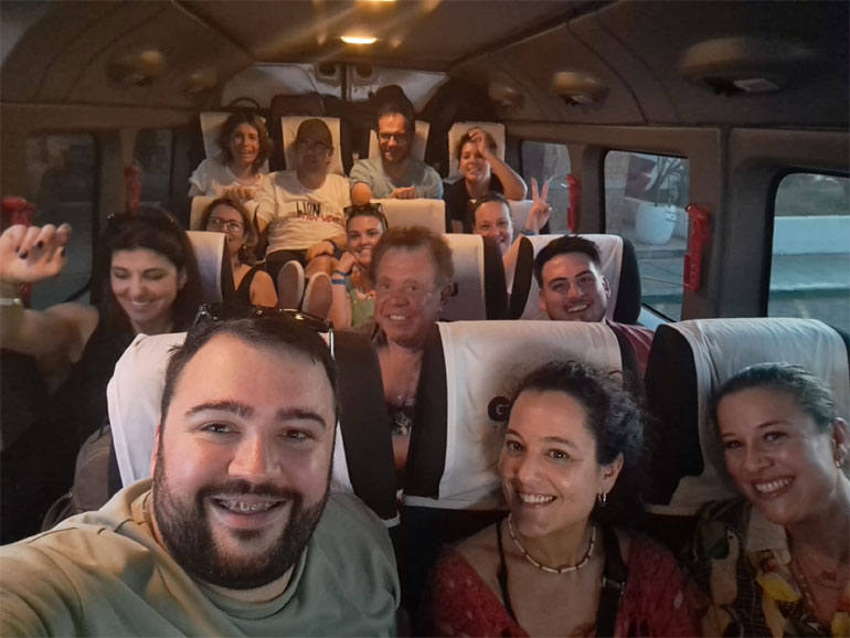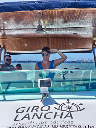 O guia encanta-nos com as suas histórias, houve quem tenha tido uma aula de Candoblé (a Inês). Outros quatro rodeiam-no, pouco depois (Catarina, Tatiana, David e Ana Br.), enquanto este discorre sobre a entidade e acolhimento baianos. Outros vão experimentando a condução da embarcação “Giro Lancha” que se dirige para a ilha dos frades (o Nuno, Daniel e Duarte, por lá mais do grupo passaram). Outros tiram fotos para as redes sociais, tendo como fundo paisagens de ilhas florestadas no horizonte, (como a Sara). Outros banham-se ao sol (Carreira), outros fogem dele procurando as sombras da embarcação (Nicole e Ana L).