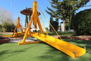 Originalmente desenhados pela Arquiteta Margarida Quirino, ao longo de dois campos de 18 buracos cada – jogadores de qualquer idade – podem jogar Minigolfe, conhecer a história da passagem dos Romanos pela Península Ibérica em cada buraco que jogar, admirar os 9000m2 de diversidade botânica, e a construção de réplicas inspirado na arquitetura romana com os sons de cachoeiras e fontes espalhadas ao longo dos cursos.