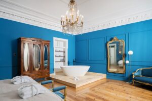Instalado num edifício histórico do século XIX, o novo hotel resulta de um processo de reabilitação rigoroso, que respeitou a identidade original do imóvel — incluindo a preservação de elementos como o pavimento de madeira e a gaiola pombalina —, integrando soluções de design contemporâneo e práticas sustentáveis. A paleta cromática, inspirada na luz natural, na areia e no azul do mar, oferece um ambiente elegante e sereno.