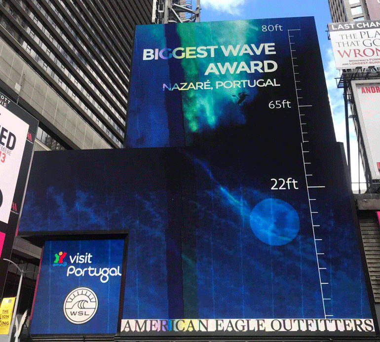 A mítica praça nova-iorquina, Times Square, vai surfar digitalmente a maior onda do mundo durante os próximos 15 dias, numa ação promocional do Turismo de Portugal no mercado norte-americano, que representa um investimento de 240 mil euros.