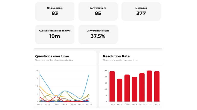 • Melhoria contínua e métricas: o registo de conversas (incluindo voz) é fundamental para identificar falhas e melhorar as respostas. As estatísticas (uso, canal, tema, conversões) permitem medir o impacto no canal direto.