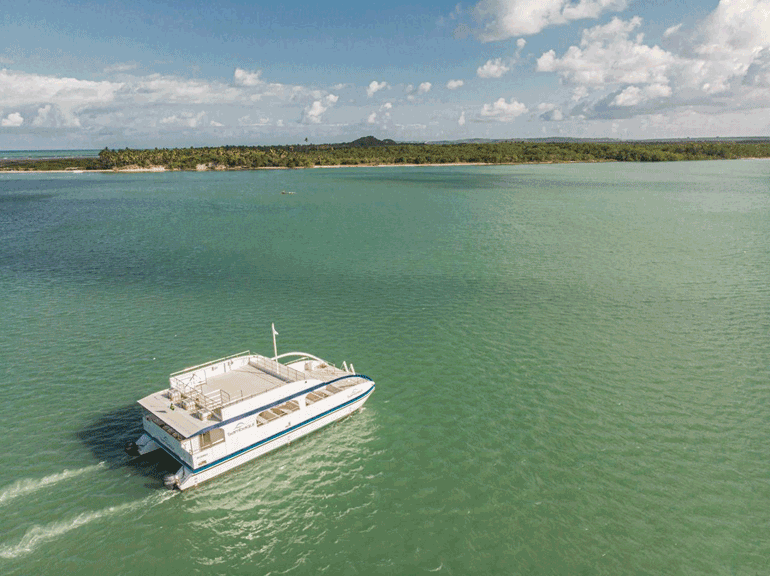 O Sambaqui navega tranquilo, silencioso e se integra ao meio-ambiente. Na verdade, é um sonho projetado e construído com design diferenciado e tecnologia leve e reciclável, o que firma o conceito da Empresa em oferecer turismo de qualidade, sustentabilidade ao meio-ambiente e proporcionar uma experiência ímpar e inovadora em navegação. Sua estrutura, que respeita a acessibilidade de todos, comporta confortavelmente 92 pessoas sentadas no convés inferior, com mesas ideais para petiscos e bebidas servidas à bordo e 28 passageiros no amplo sun-deck com opção de espaço livre ou com mesas e cadeiras, além de espaço de lazer à proa e popa. Conta ainda com sistema de som para entrada usb e bluetooth, iluminação noturna e banheiros individuais masculino e feminino, bar para drinks e preparo de buffet, além de equipamento de salvatagem e segurança moderno e completo – extintores, coletes salva-vidas e bóias flex-prim para 50 passageiros cada. Sambaqui em Tupi-guarani significa “amontoado de conchas”, em alusão à Fazenda do seu proprietário que se chama Casqueira, batizada assim pelos antigos habitantes da região que ao se alimentarem dos crustáceos e moluscos abundantes, principalmente as ostras gigantes, amontoavam suas cascas formando os casqueiros ou o depósito de conchas. A fazenda Casqueira é margeada pelo Rio Garatuba, que deságua no Rio Curimataú, tem diversos hectares de mata atlântica e manguezal preservados, é referência agrícola na Região e campo de estudo e pesquisa arqueológica por toda a sua riqueza natural, histórica e cultural.