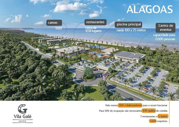 A rede Vila Galé Hotéis se prepara para abrir as portas do novo resort em Alagoas no dia 22 de junho. O resort, que é o maior do estado alagoano, foi construído em uma área de 110.498 metros quadrados.