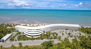Em meio à deslumbrante paisagem de Maragogi, em frente à Praia do Camacho, surge um projeto que captura a essência da beleza natural da região. O Oikos Maragogi GAV Resorts, novo resort da GAV Resorts no Nordeste, é um convite à contemplação e ao encantamento. Sua arquitetura futurista reflete dinamismo e força acompanhando o movimento natural do terreno, com longas linhas curvas, em materiais severos como concreto, metal e vidro, valorizando sempre a iluminação natural.