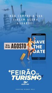 O Shopping Midway Mall, em Natal será palco nos dias 18 e 19 de agosto do 1° Feirão de Turismo promovido pela Associação Brasileira de Agências de Viagens, seccional do Rio Grande do Norte(Abav-RN). Segundo a presidente da Abav-RN, Michelle Pereira , o objetivo é reunir as Agências Abavianas em um grande feirão promocional, voltado para o público consumidor de Natal. No feirão, o norte rio grandense terá preço e oportunidades exclusivas nos dois dias.