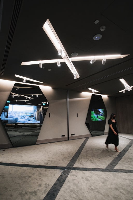 Um dos melhores exemplos desta capacidade de customização das soluções LG prende-se também com o seu aspeto estético, já que algumas das TVs foram desenhadas à medida e integradas em espelhos em alguns quartos e determinadas áreas comuns, o que faz com que este elemento não prejudique o plano de design de interiores do hotel, já que, quando apagada, a TV torna-se “invisível”.