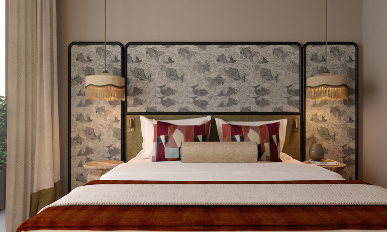 Com um projeto de arquitetura do estúdio NN e interiores assinados pela Nano Design , os 70 quartos, de 14 tipologias diferentes, estão distribuídos ao longo de 5 pisos e oferecem ambientes acolhedores e sofisticados, capazes de combinar detalhes contemporâneos e outros mais vintage, onde os tecidos repletos de cor, padrões e texturas, a madeira, os pontos de luz natural e a vista privilegiada para o Douro e a cidade do Porto marcam presença.