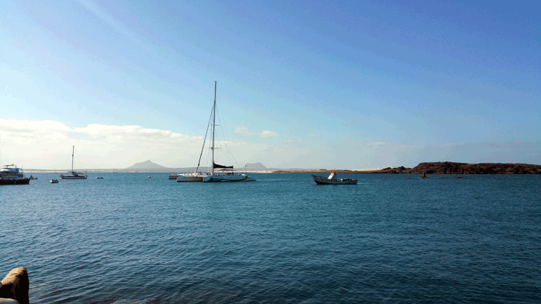 Rodeados de mar por todos os lados não há como ir à Boa Vista e não explorar os encantos desta ilha a bordo de uma qualquer embarcação. E foi o que fizemos no segundo dia desta press trip. No porto de Sal Rei um bote de borracha leva-nos até um dos catamarans da Sea Turtle, uma empresa local que promove excursões pelas águas mornas de Cabo Verde. Uma vez a bordo, e confortavelmente instalados, a viagem que dura aproximadamente três horas decorre sem sobressaltos, levando-nos pela costa da Boa Vista e parando a meio do percurso para uns mergulhos refrescantes. Animação não falta a bordo e a tripulação não hesita em convidar-nos para um pezinho de dança.