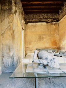 Antes de mais, (e com uma pontada de desilusão) destruímos um dos fascínios que tornava Pompeia tão interessante – os corpos conservados pelas cinzas da erupção. Na realidade, não são corpos reais, mas sim moldes de gessos de alta resolução feitos a partir dos espaços vazios deixados pela decomposição dos corpos. Os arqueólogos foram sim capazes de recriar posições e gestos das vítimas da erupção nos seus momentos finais.
