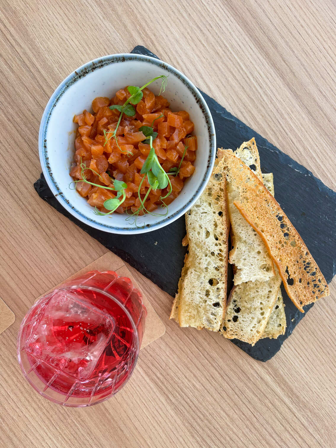 A nova carta é uma celebração dos sabores frescos e vibrantes da estação, com uma seleção de snacks que capturam a essência do verão. Entre as opções em destaque estão o gaspacho de melancia, maçã granny smith e tomate, uma escolha refrescante ideal para os dias quentes, e o ceviche de salmão e citrinos, perfeito para partilhar entre amigos.
