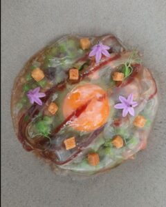 Disponível em cinco, seis e sete momentos, o menu de degustação atravessa snacks, bowl, peixe, carne, sobremesa e petit fours, na sua versão mais curta, estendendo-se ao caviar e sugestão no pão para uma proposta mais completa. Os pratos mudam diariamente consoante a disponibilidade do produto, à semelhança da opção já existente de “Fora da Carta”.