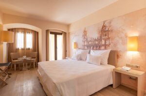 de melhorias estruturais e funcionais, com especial destaque para os 149 quartos totalmente remodelados, num total de 300. Estes quartos distinguem-se pelo design renovado e elementos decorativos exclusivos, como papel de parede temático que retrata episódios marcantes da cultura espanhola. Cada um inclui ainda QR code que permite o acesso a conteúdos interativos e educativos, proporcionando uma experiência de estadia mais envolvente e culturalmente enriquecedora.