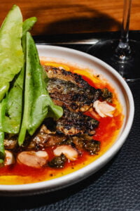 Não podíamos deixar de experimentar um dos pratos mais conhecidos da casa: o Arroz de Costela, onde a costela de novilho é cozinhada lentamente a baixa temperatura, entre seis a oito horas, sendo depois desfiada e servida num arroz cremoso, com um toque agridoce de molho teriaky, equilibrado pela acidez da maçã verde e do agrião. É servido com cebola crocante e pimentos fermentados (20€).