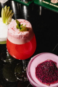 Mas antes de passar à ação, uns cocktails vegan são o plano ideal para entrar no ambiente, sempre com música de fundo a acompanhar: não pode perder o novo DAJUH, que marca por um paladar refrescante, composto por abacaxi macerado, xarope de abacaxi (homemade), polpa de morango e vodka. É finalizado com uma espuma de chá de hibisco, água de rosas e lima (também com versão sem álcool).