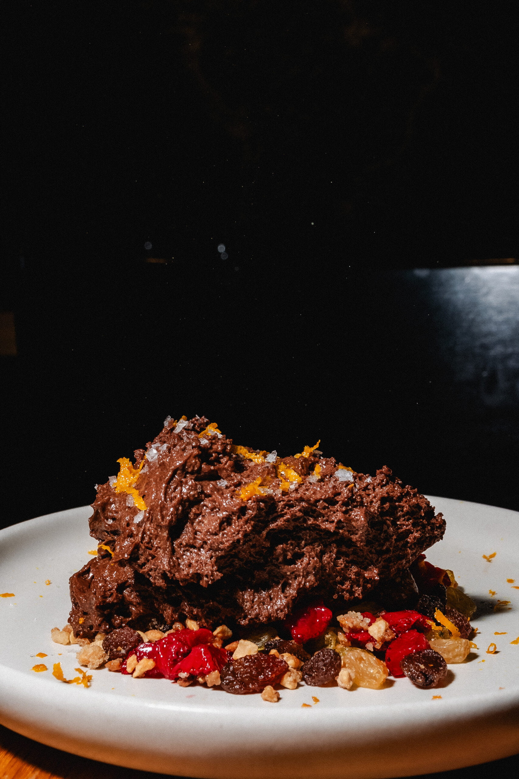 Como se costuma dizer, há sempre espaço para a sobremesa: uma deliciosa Mousse de Chocolate 70%, com o equilíbrio ideal entre doce e salgado, através do mix de nuts e de raspas de laranja (8€).